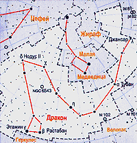 Положение созвездия Дракона на звездном небе.